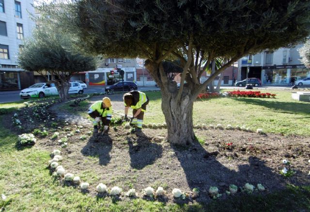 El objetivo es mejorar la imagen de una de las entradas a la con pensamientos, brassicas y ciclámenes