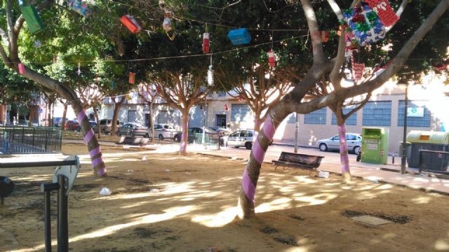 Los niños y jóvenes de la pedanía han adornado los jardines con materiales reciclados