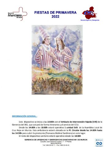 Dispositivo asistencial de cobertura sanitaria del Servicio Murciano de Salud desplegado hoy día 23 en la ciudad de Murcia con motivo del Entierro de la Sardina