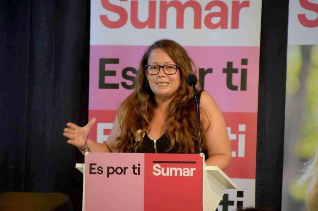 La candidata num.2 por Sumar en la Región de Murcia, Liliana Mellado, muestra su apoyo a los trabajadores de Monbus en huelga